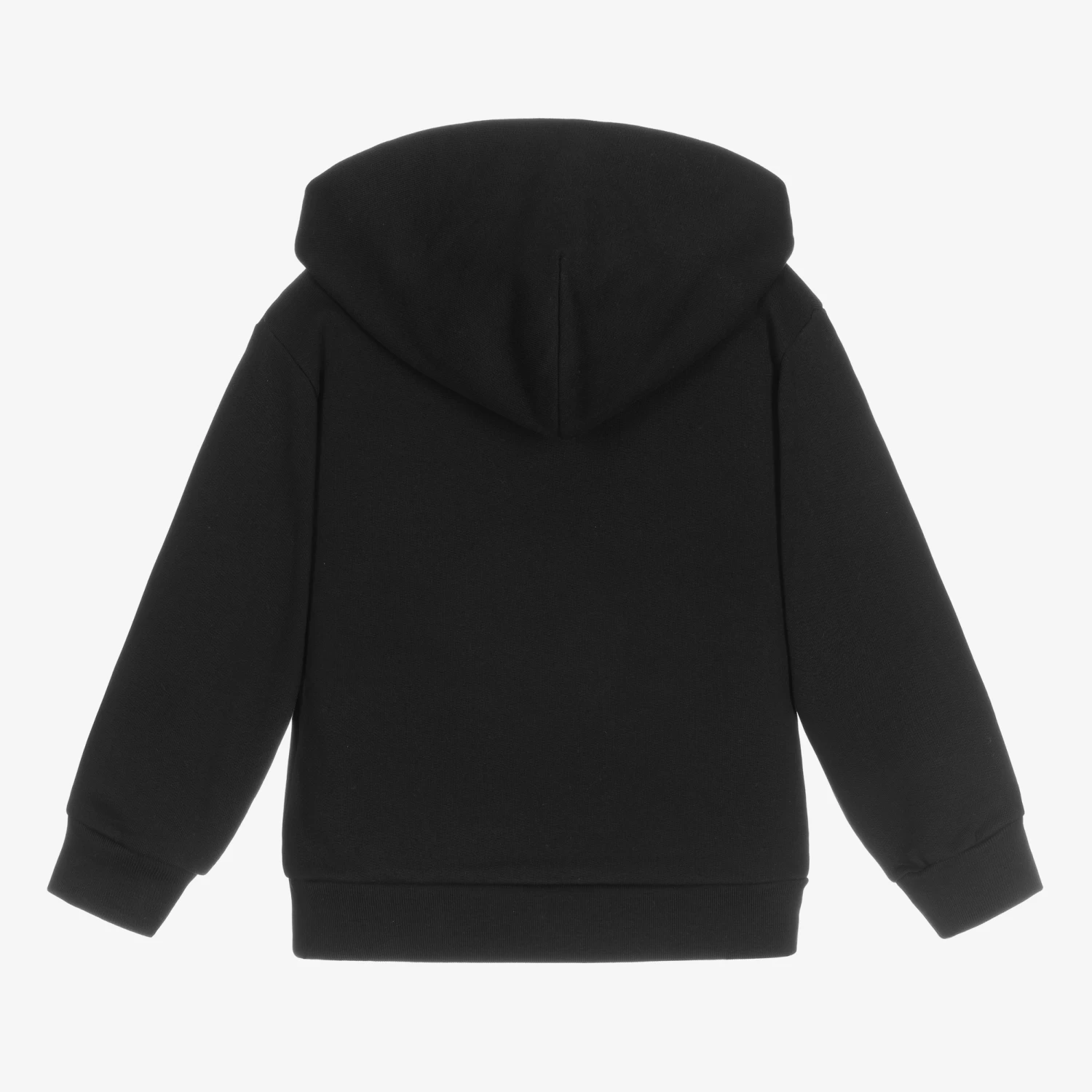 Black Mini-me cotton hoodie for boys and girls by luxury brand Balenciaga. Made in soft and stretchy sweatshirt jersey with a fleecy interior, a Cities Paris embroidered logo appliqué decorates the front in white, with the designer’s logo beneath.