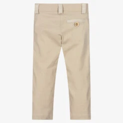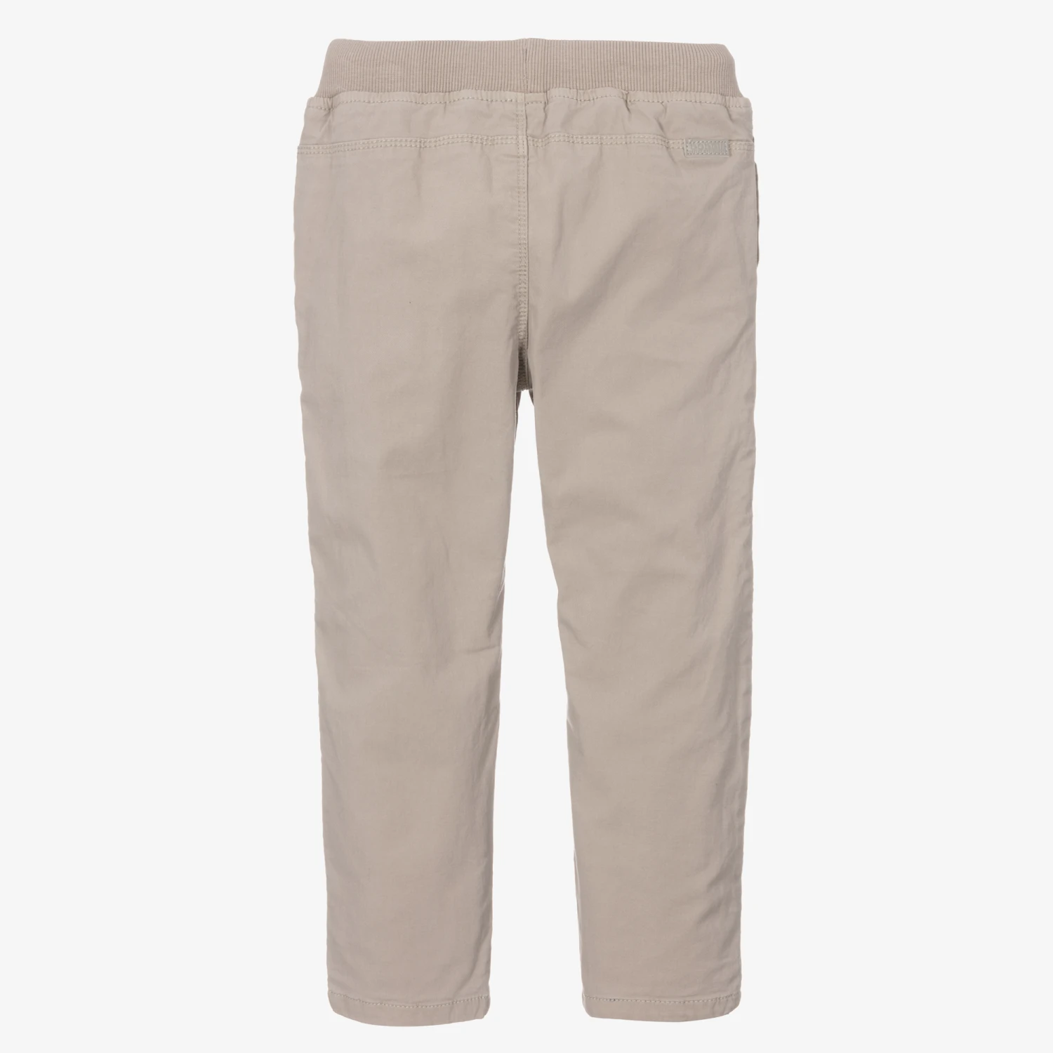 Smart-casual beige trousers for little boys, by Boboli. Woven in lightweight twill with a comfortable stretch, these slip-on trousers have stylish panel details, and a drawstring waist for a comfortable fit. They have a soft cotton jersey lining for added comfort.
