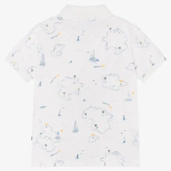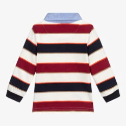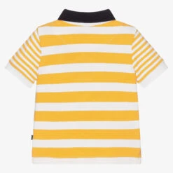 White cotton jersey polo shirt for boys by DKNY. Classically styled with a ribbed collar and button fastenings on the front, red and black trims give an alternative finish. A block red logo print on the chest and a large black logo across the back ensure instant brand recognition.Â