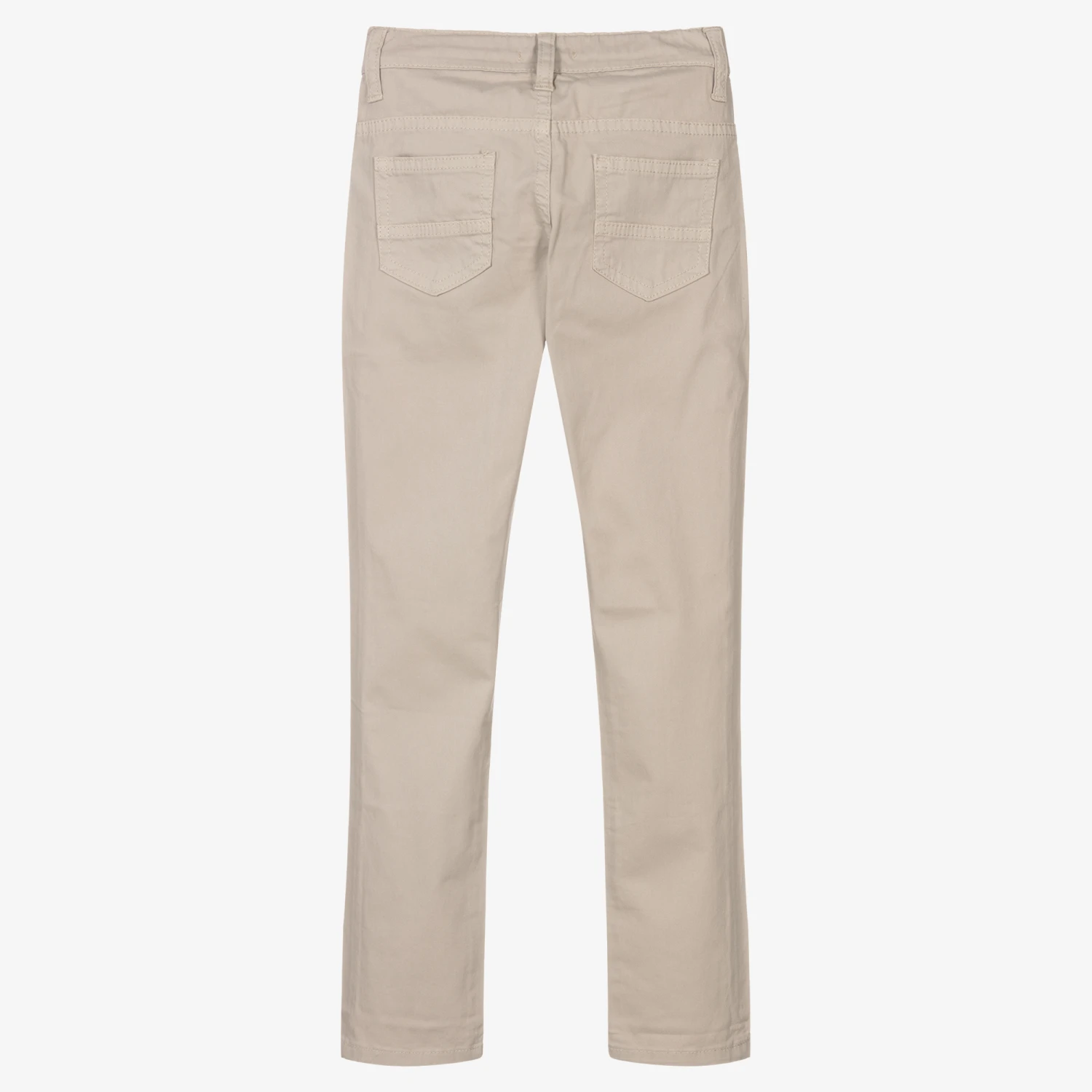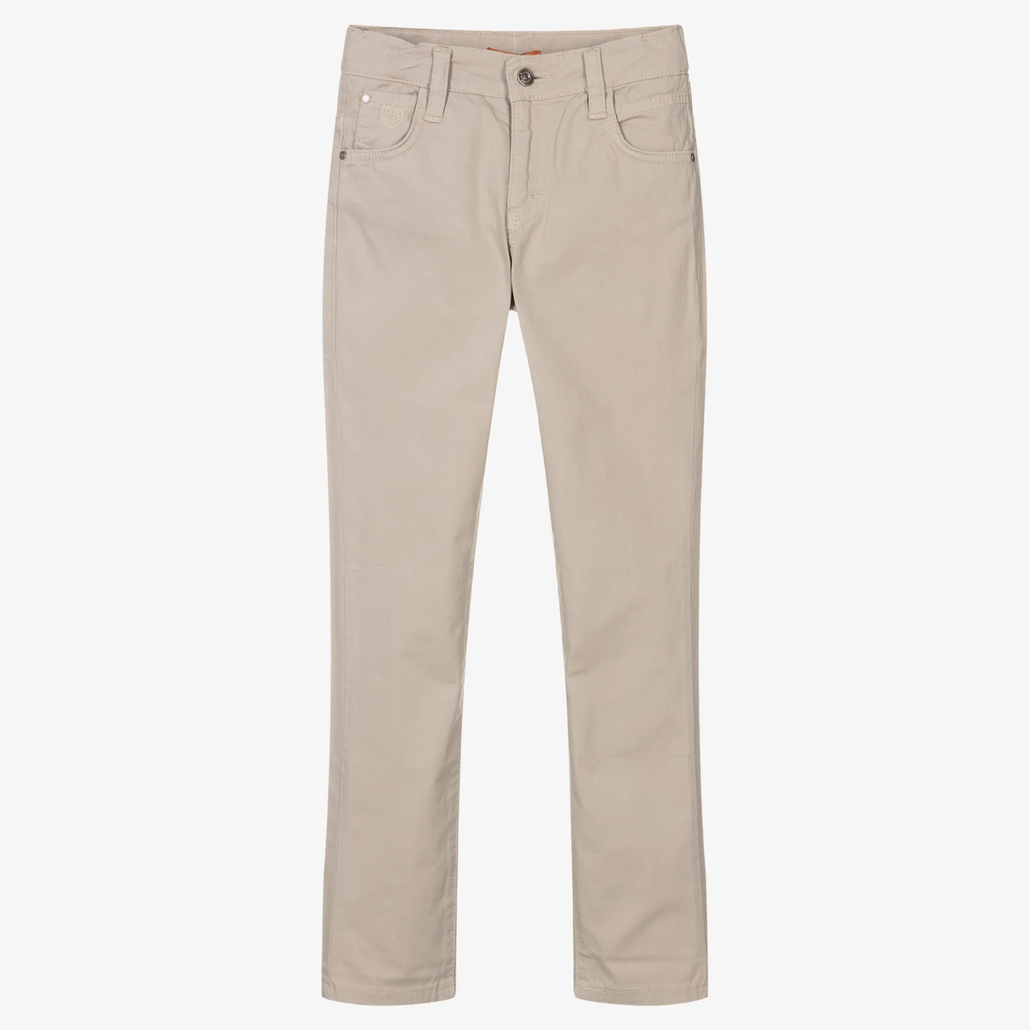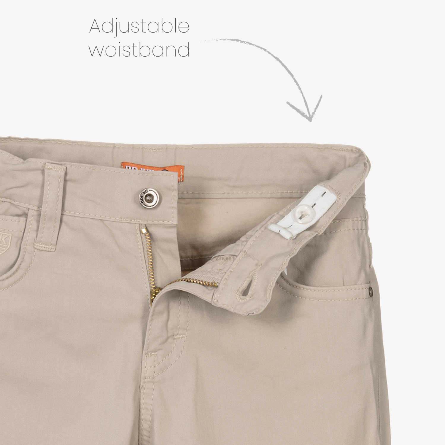 Beige trousers for boys by Portuguese brand Dr. Kid, made in soft and lightweight twill with a slight stretch. Comfortable to wear, they have a button and zip fastening, classic five-pocket styling, and an adjustable waist to ensure a good fit. There is a tonal embroidered logo on the coin pocket, for a subtle designer finish.