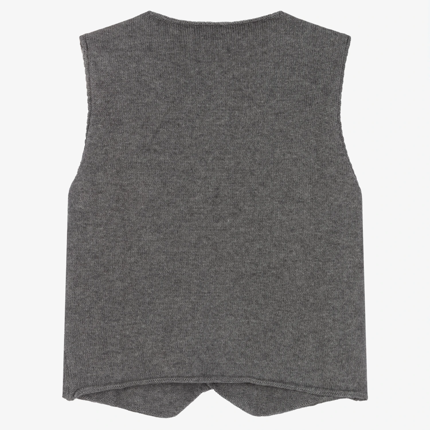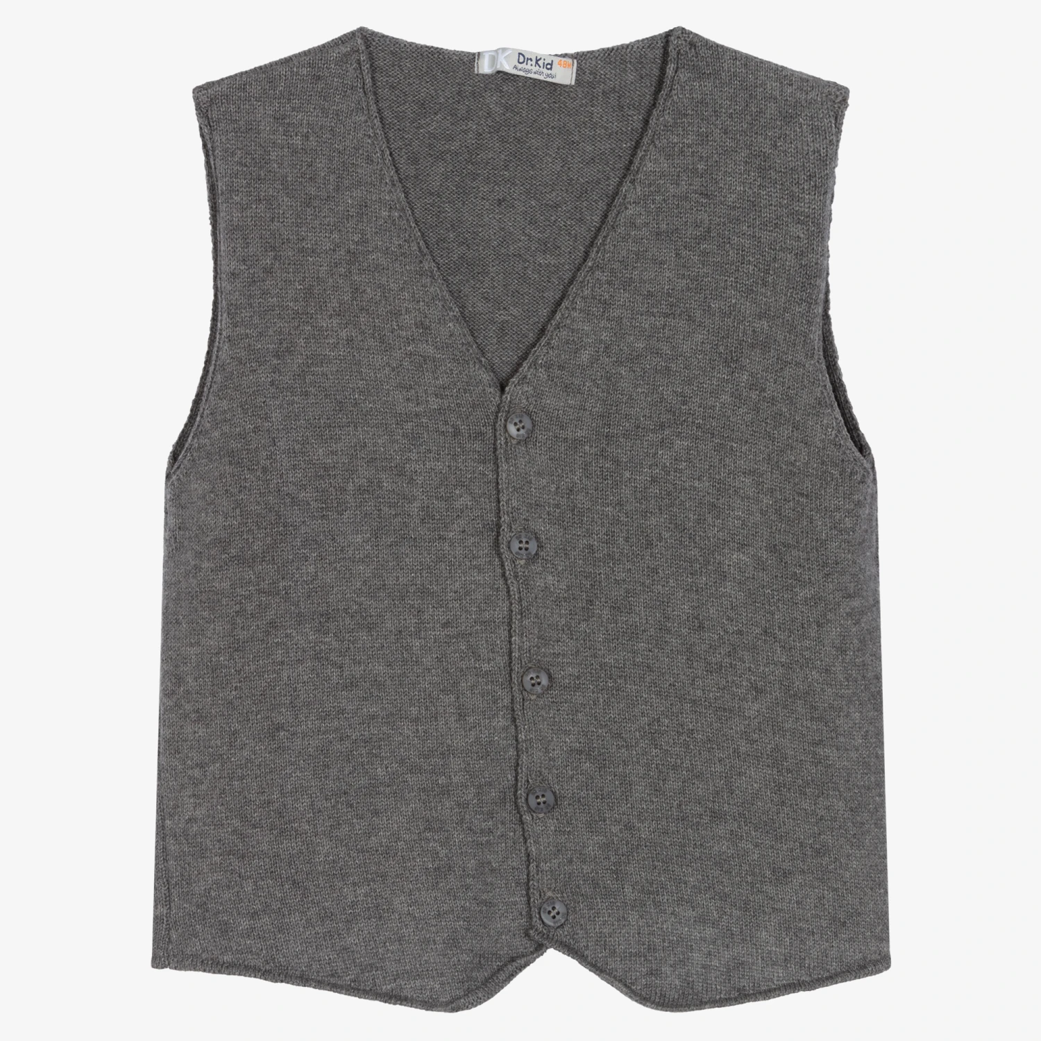 A lovely grey waistcoat for little boys by Dr. Kid, made in a soft cotton and wool blend knit with button fastenings on the front.