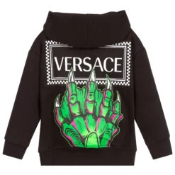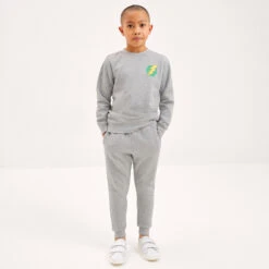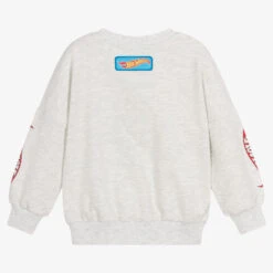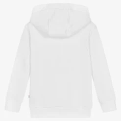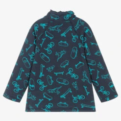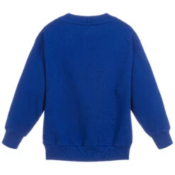 Boys navy blue and grey sweatshirt from luxury designer Emporio Armani. It is made in super-soft Milano jersey with a slightly wider shape. There is a grey and ivory elasticated band across the front, with a repeated jaquard Emporio Armani logo.