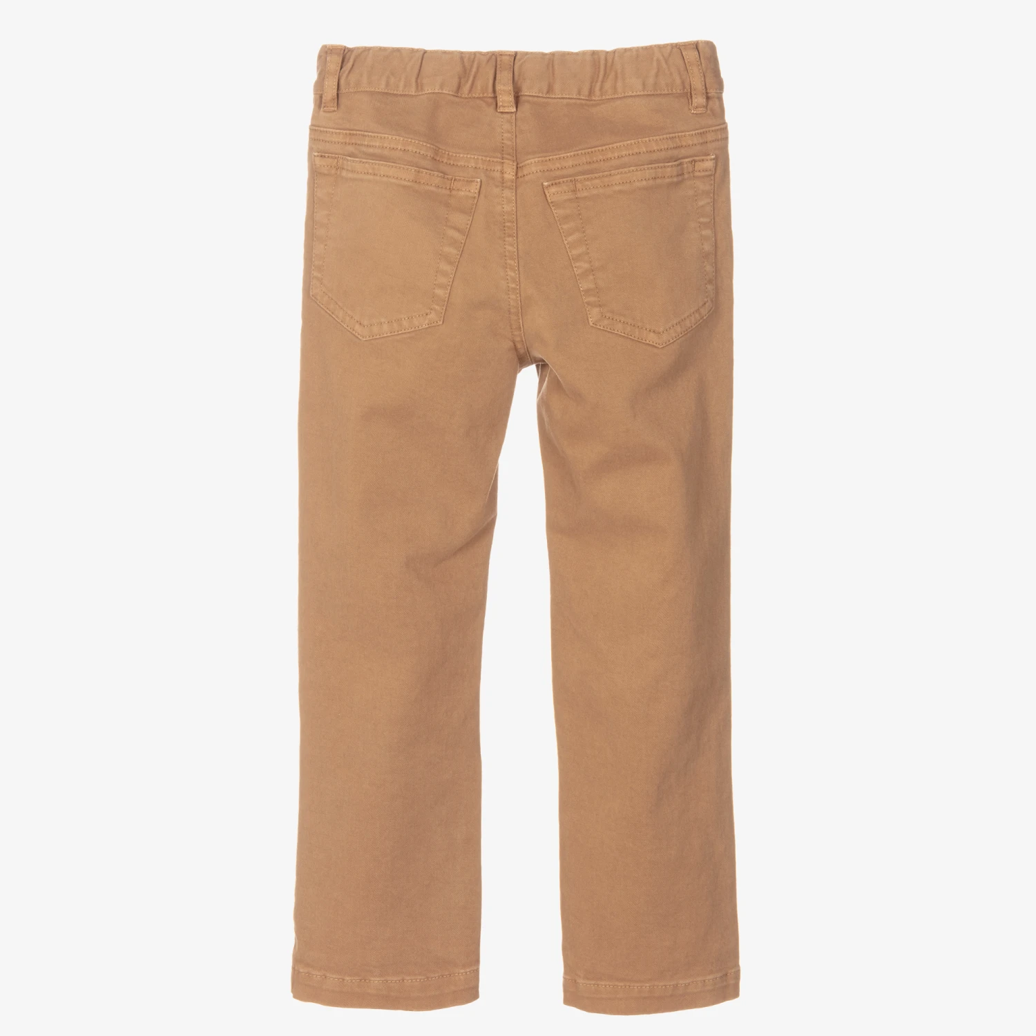 Dark beige trousers for boys by luxury Italian brand Il Gufo, made in soft cotton twill. In a classic five-pocket style, they have a popper and zip fastening, with an adjustable waistband for a comfortable fit.