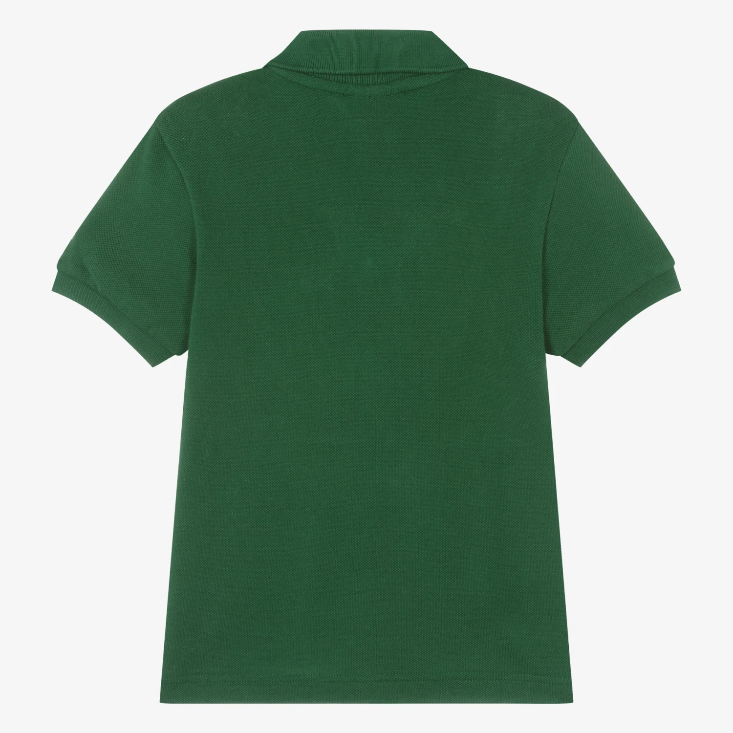 Dark green polo shirt for boys by Lacoste, made from organic cotton petit piqué. For easy wear, this casual top has a ribbed collar, a button placket, and decorative blue stitching on the shoulders. A rubberised blue and white striped logo can be seen on the chest, featuring the brand’s iconic crocodile motif. Ribbed trims and an embroidered crocodile patch on the hem finish the look.