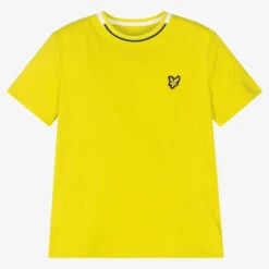 Add a pop of colour with this classic green T-shirt for boys by British designer Lyle & Scott. Made in breathable cotton jersey, this casual top has a stretchy ribbed collar with a black and white stripe detail. It features the iconic golden eagle logo appliquéd on the front to epitomise the brand’s timeless style.