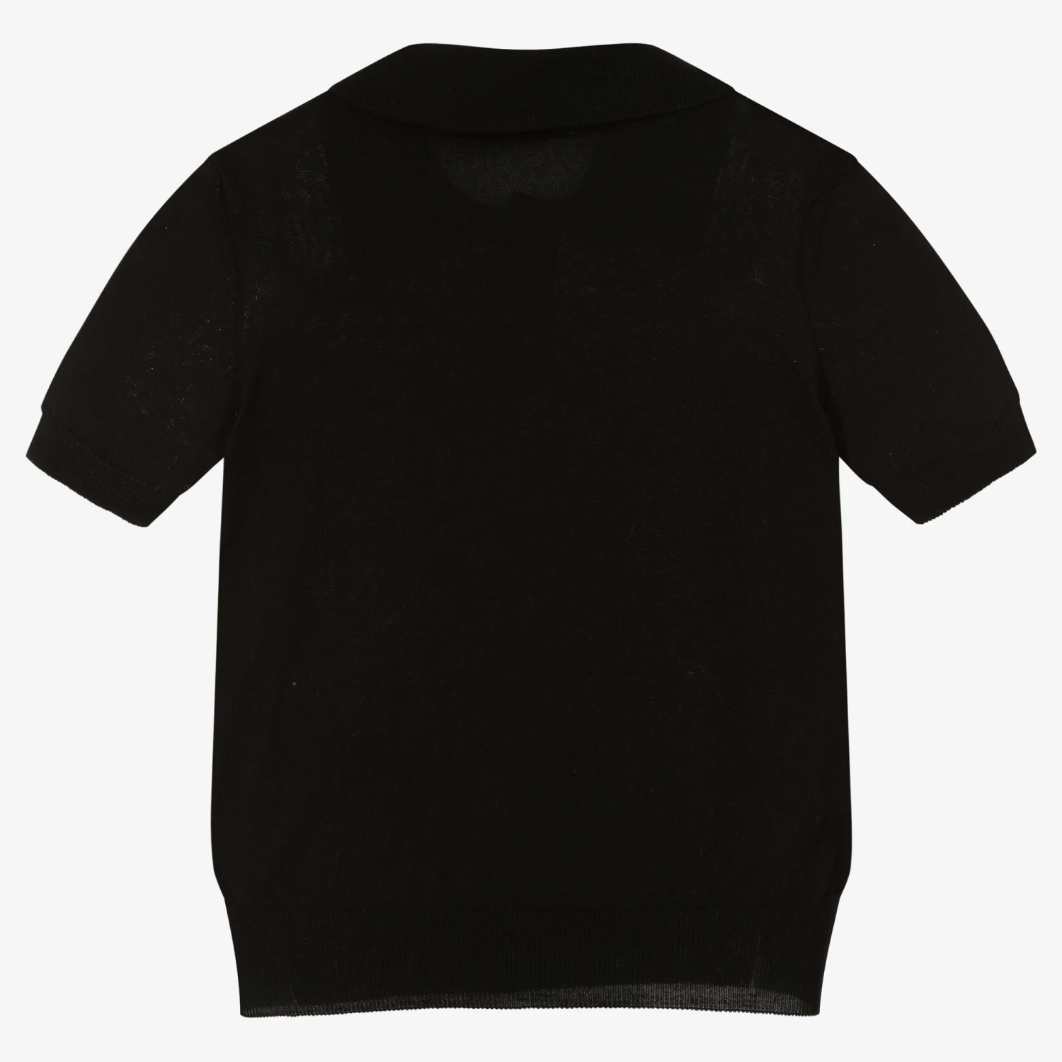 Black polo shirt for boys from MSGM. Knitted in soft cotton, it has a logo patch on the front and branded buttons.