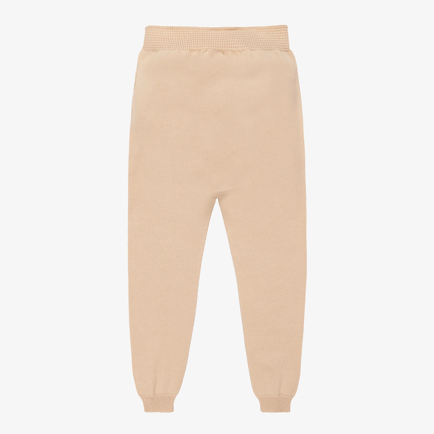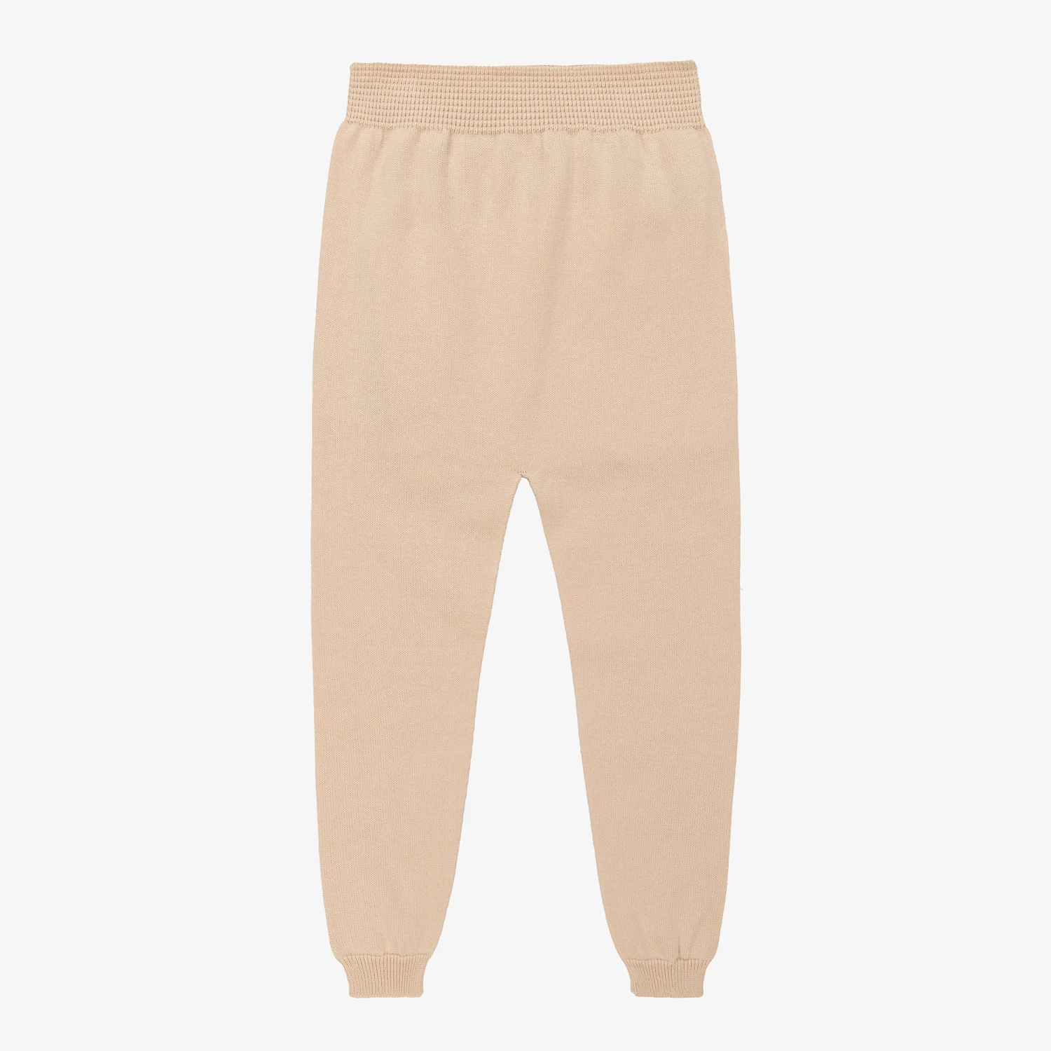 Beautifully soft and comfortable for little boys and girls, these beige knitted trousers are from Portuguese brand, Wedoble. Made with breathable organic cotton, this cuffed style has a stretchy ribbed waistband that is gentle on little tummies.