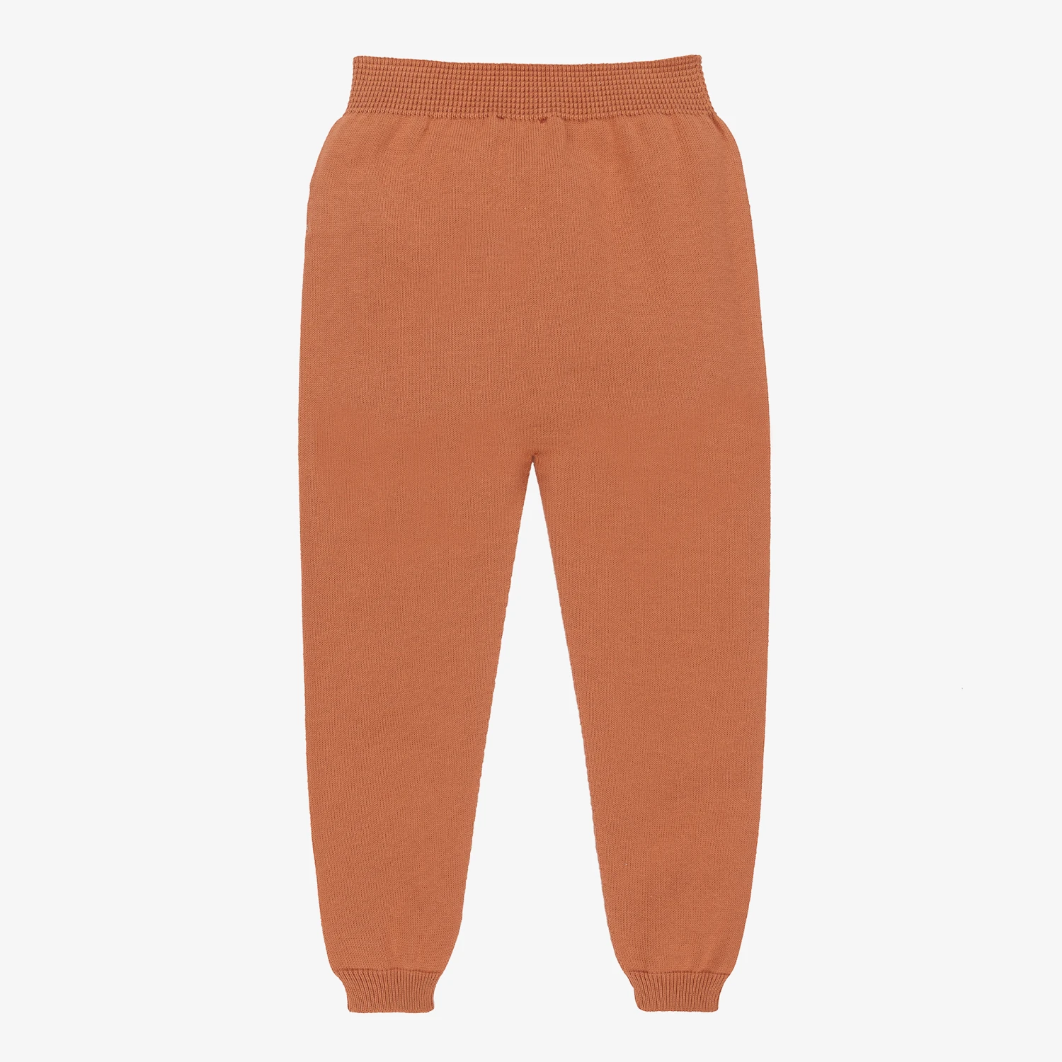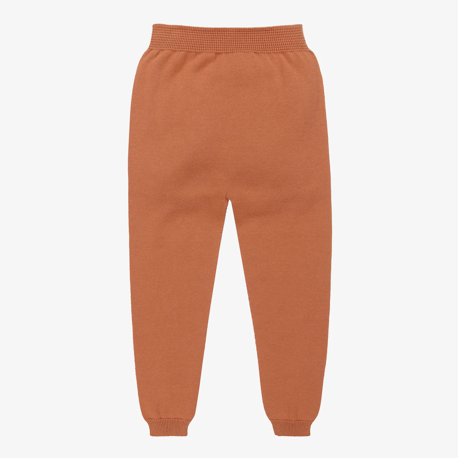 Beautifully soft and comfortable for little boys and girls, these terracotta orange knitted trousers are from Portuguese brand, Wedoble. Made with breathable organic cotton, this cuffed style has a stretchy ribbed waistband that is gentle on little tummies.